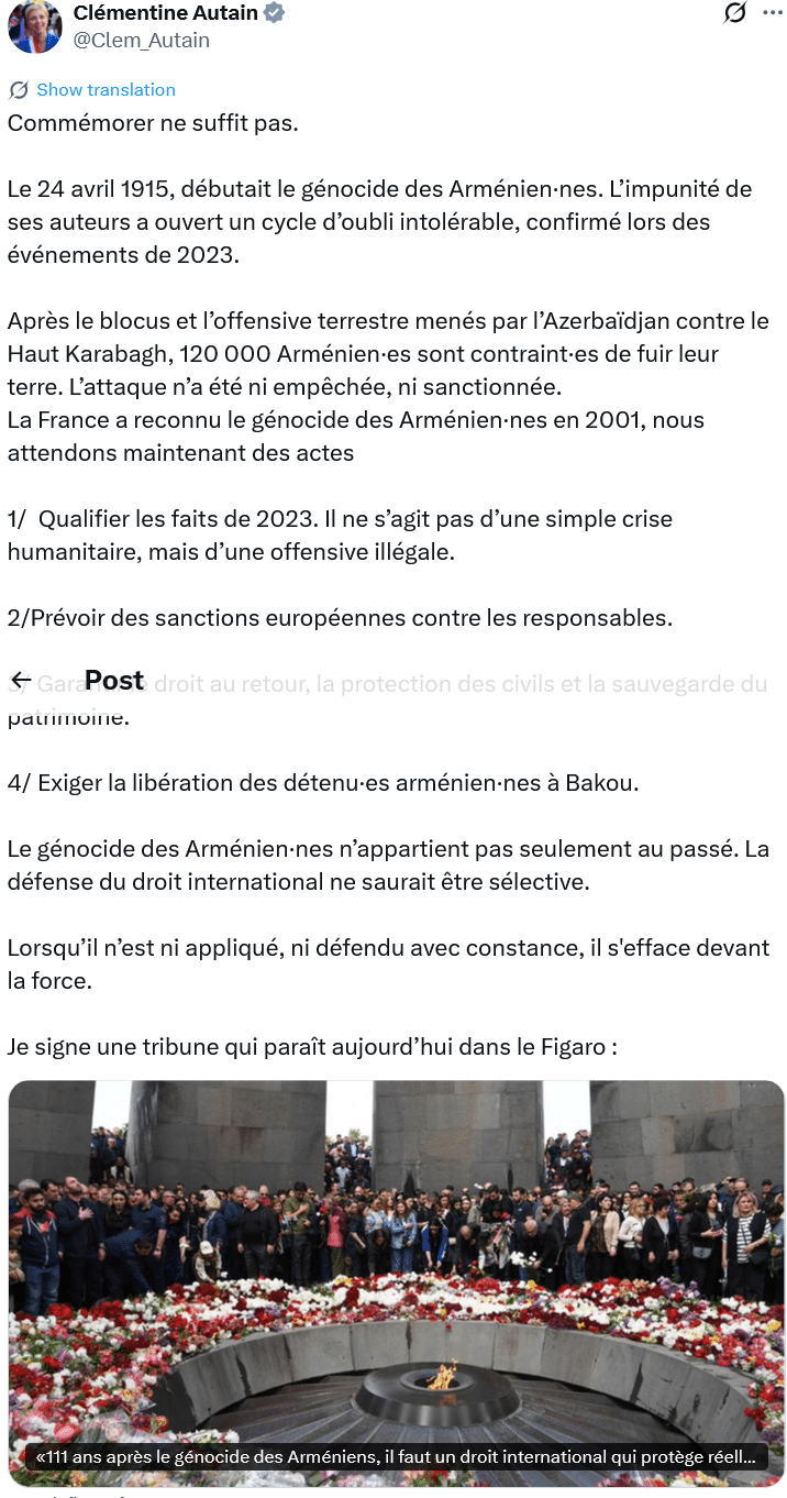 Clémentine Autain : Commémorer ne suffit pas
