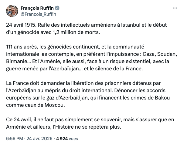 J.F. Ruffin : La France doit demander la libération des prisonniers détenus par l’Azerbaïdjan au mépris du droit international