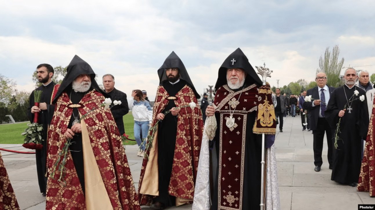 Dans un contexte de tensions persistantes depuis déjà un an entre les autorités et l’Église apostolique arménienne, la télévision publique n’a pas diffusé cette année la visite du Catholicos au mémorial de Tsitsernakaberd. Pourtant, le Saint-Siège d’Etchmiadzin avait annoncé à l’avance qu’à 10h30, Karekin II célébrerait près de la flamme éternelle un office d’intercession en mémoire des saints martyrs du génocide arménien.