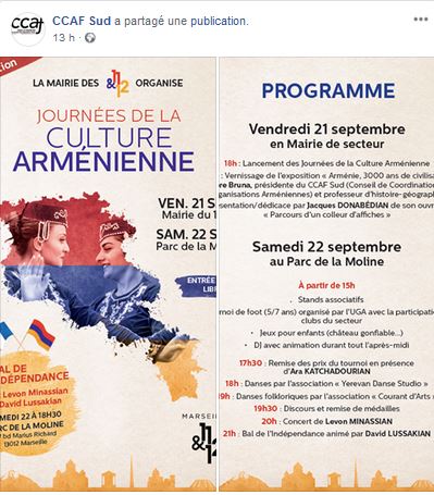 Marseille : Première édition des Journées de la Culture Arménienne, les 21 et 22 septembre prochains.