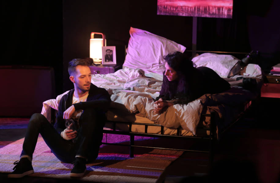 La talentueuse Nouritza Emmanuelian nous le souligne d’emblée : « La pièce Good night ne parle pas d’Arménie, il n’y a pas de musique arménienne mais… Mais je pense que cette arménité que j’ai en moi, elle se retrouve à certains moments dans cette pièce si forte, qui nous fait plonger dans l’intimité des personnages ». Les personnages – campés magistralement par Nouritza Emmanuelian et Romain Poli – et leurs évolutions sont en effet le point fort de ce thriller psychologique. L’histoire se déroule dans l’espace clos d’un appartement parisien : si un événement tragique est en train de bouleverser les rues de Paris, l’événement qui se passe chez Léa n’en est pas moins tout aussi important. En pleine nuit, cette jeune veuve voit s’introduire par la fenêtre Anthony. Léa saisit une arme et attache l’intrus à un lit.