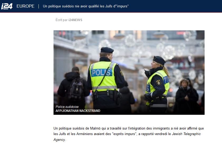 https://www.i24news.tv/fr/actu/international/europe/182550-180824-un-politique-suedois-nie-avoir-qualifie-les-juifs-d-impurs